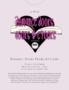 March 28, 2026 Participating author at the Hooks ‘N Crooks Book Signing. 11-4 PM, Georgetown Optimist Club.